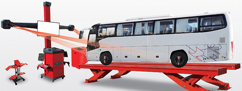 • The 3D wheel axle positioning software specially designed based on the structure of commercial vehicle bodies, is highly accurate in measurement and smooth in operation. The technology of simultaneous measurement and display for three axles significantly improves work efficiency.